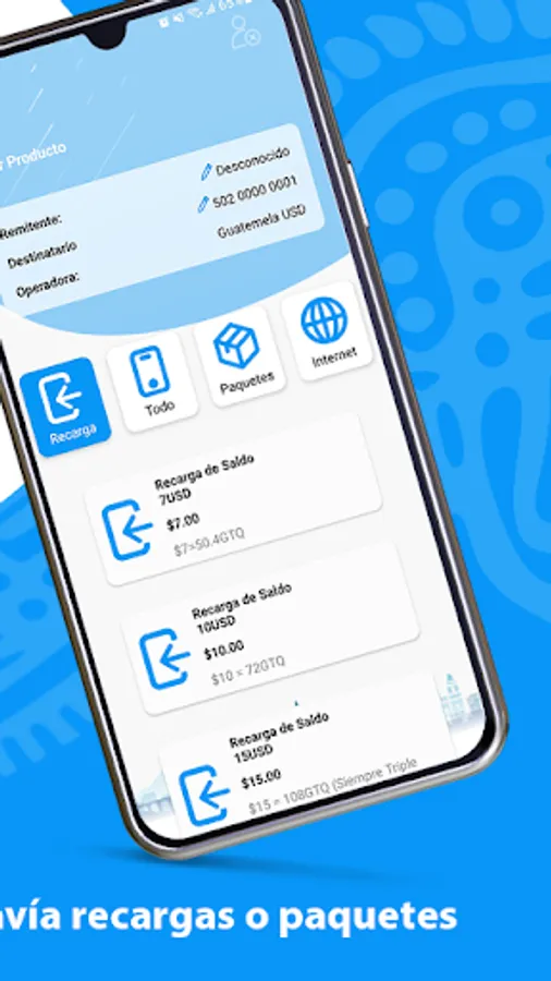 Contigo en Guatemala is a mobile application that will allow you to send credit or Internet packages to anyone in Guatemala in an easy, secure and instant way.