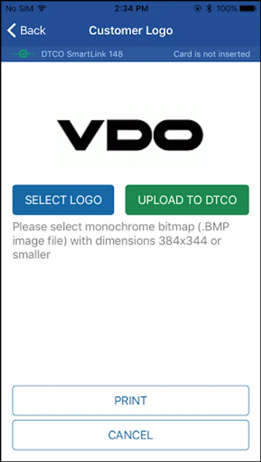 Choose your company logo and upload it to the DTCO, to be shown on the printout.