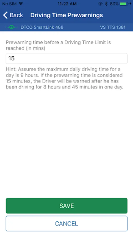 Set a prewarning time, to inform driver before his driving time limit is reached.
