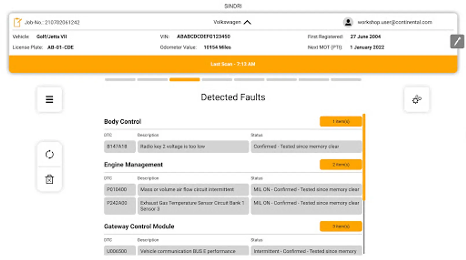 SINDRI in conjunction with a DAD-C1 VCI enables you to have a deep scrutiny of vehicles to gather more details of their condition and their servicing needs. Via Bluetooth connection the DAD-C1 performs a vehicle scan to read out a predefined set of vehicle data like faults, service needs, battery status and live items that indicate the status of the vehicle. The results of the scan are presented to you in the app. While the scan is running you can also add photos and comments to the report as well as a checklist to document manual inspections by you. After you have finished your job you can send the report as a pdf via mail or upload it to your dealer management system (in case your dealer management system provider does support it).