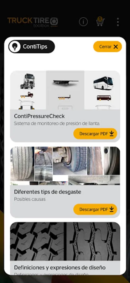 This application allows you to have all the necessary tools to be an expert in truck tires, without having to be connected to a WIFI network you can access the different multimedia contents of the app.