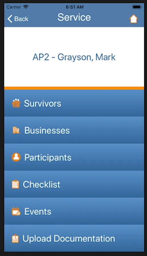 From the individual Services you can access, Survivors, Businesses and Participants linked to each case. Review and complete Checklist Tasks for each case. Review and edit Visitation and Service Events for each case and Upload Documentation for each case.