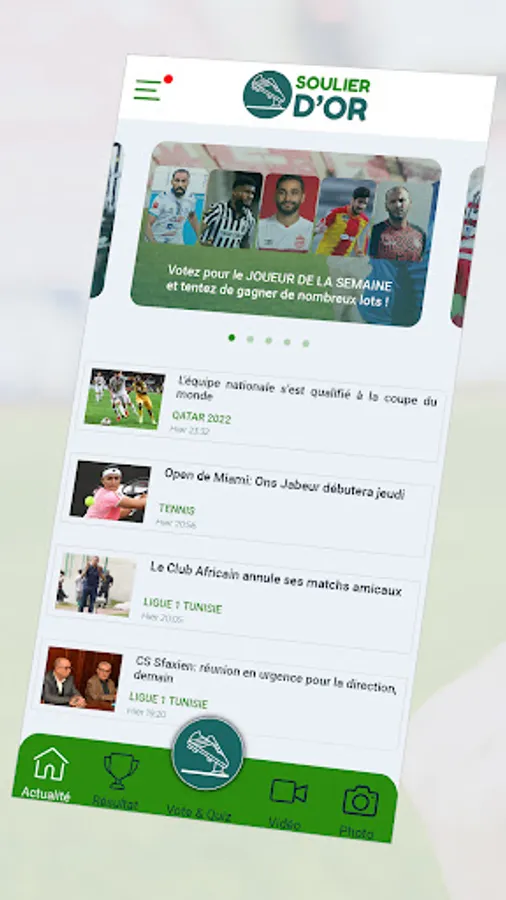 Soulier d'OR is a sports application offering exclusive content that revolves around the nomination of the best player in Tunisia.