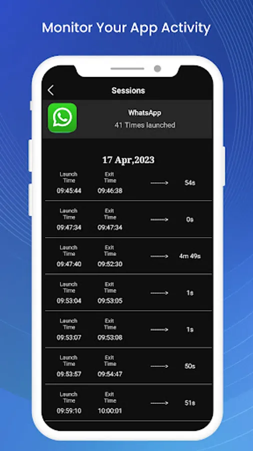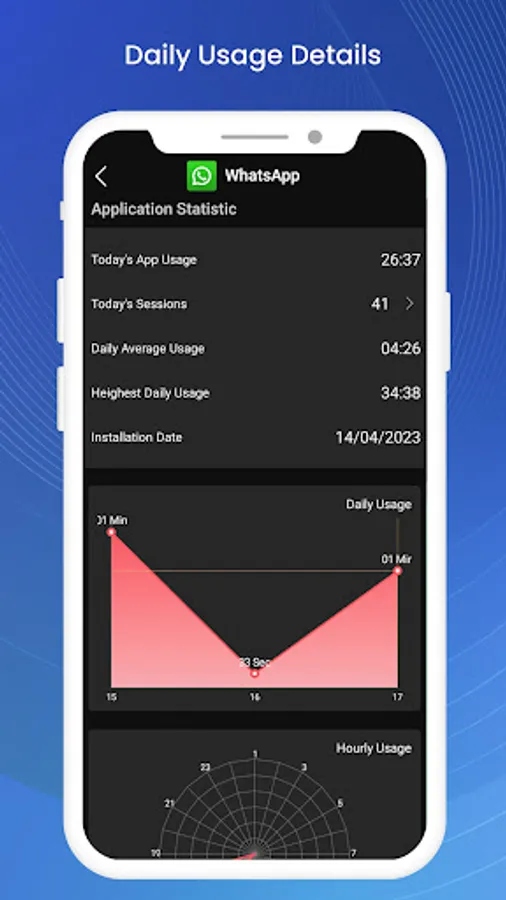 ➤ App usage time limits: App time tracker app allow users to set limits on the amount of time they can spend on specific apps. When users exceed these limits, they will receive notifications or alerts of apps usage android application. For example, App Usage Tracker can also track WhatsApp usage time.