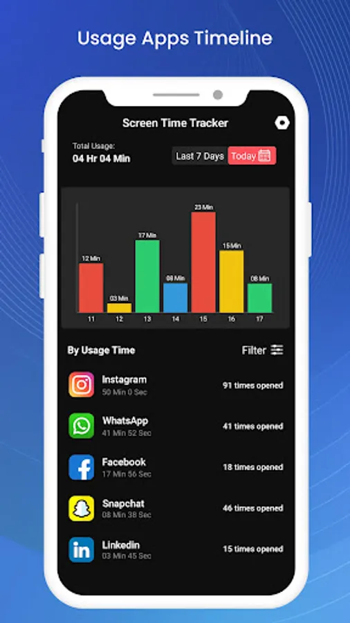 ➤ Usage history: App usage tracker app provide users with a history of their device usage, including how much time they spent on their device on each day, which apps were used the most.