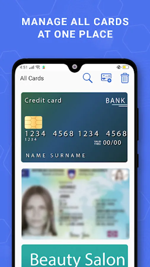 The ID Card Holder application helps you store your all-personal cards. Every time you need any card, simply open the app and use it as needed. Don't worry about losing your cards. As you can keep all your original cards at home. The Credit Card Holder application is more useful for securing your cards in a simple manner. Prove who you are straight from your smartphone by adding your nationality card, bank cards and office ID card to the Cardholder app. So, you never have to worry about your cards again.