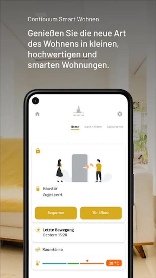 With Continuum Smart Wohnen, the doors are open to you. Forget about heavy bunches of keys and expensive emergency services, because with the Smart Wohnen app you have all access points directly in your hand. With the help of state-of-the-art technology, the apartment and front door can be opened, locked and managed with a click of a smartphone.