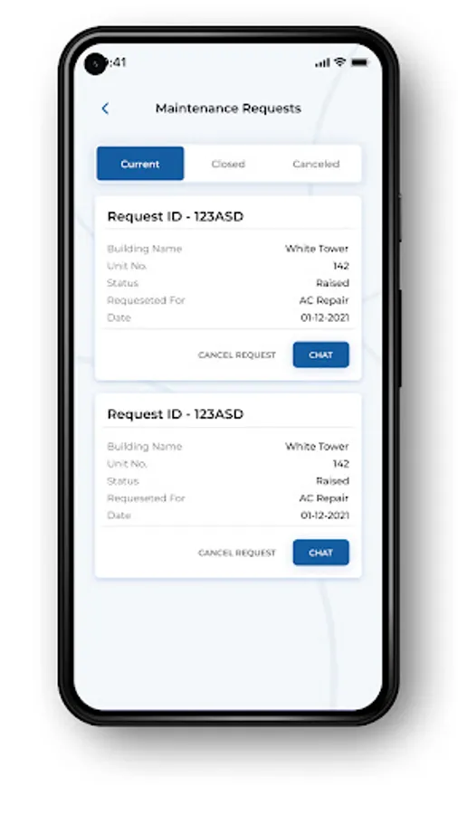 4- full maintenance management module to view, submit, schedule maintenance requests and track the accordingly