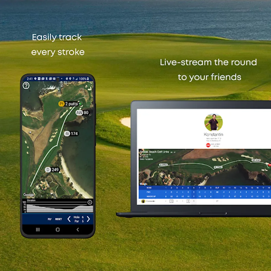 Free golf GPS rangefinder, scorecard and shot tracker. Easy to use. Tap to measure distance to any point on the course. Satellite views with aerial flyover of every hole on any of over 40,000+ worldwide course. Conforms to tournament rules. Optimized to save battery life. No registration required to start playing.