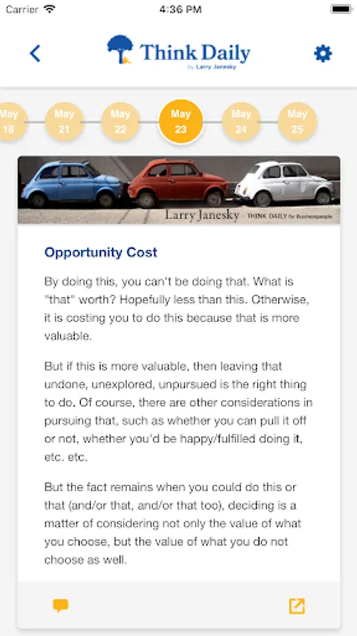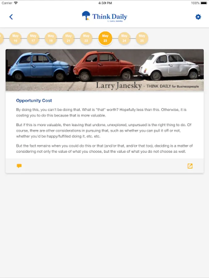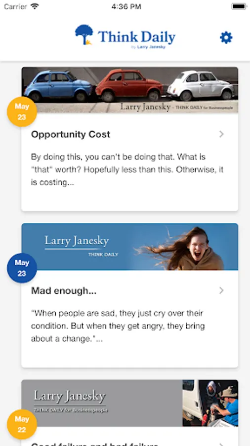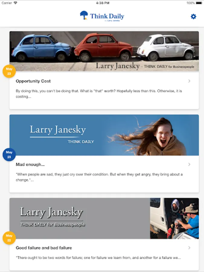 Think Daily is a SHORT message sent each morning by successful entrepreneur, business leader, teacher, author, and inventor with 31 patents, Larry Janesky.