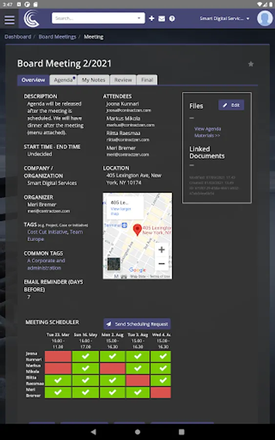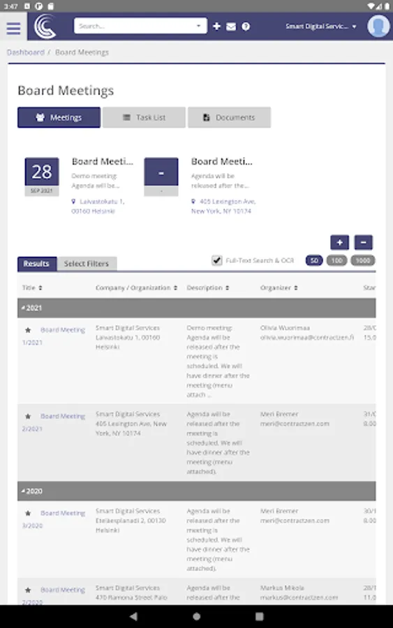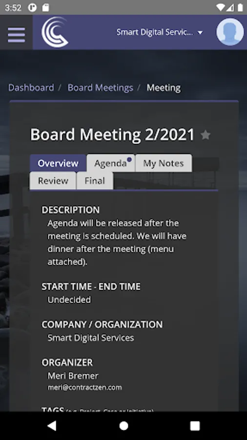 ContractZen is an easy-to-use and secure governance software with pricing suitable for any organization, and consisting of advanced contract management, 100% paperless board meeting management, effortless entity management, seamlessly integrated e-signature providers, and built-in virtual data rooms (VDR) - all in one. Bringing modern governance for millions of SMBs and non-profits around the world, ContractZen’s mission is to help organizations be due diligence ready every day. We bring peace of mind to executives, investors, and boards. That’s why our name is ContractZen.