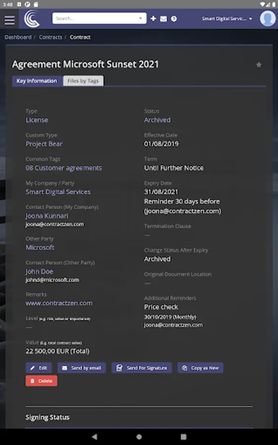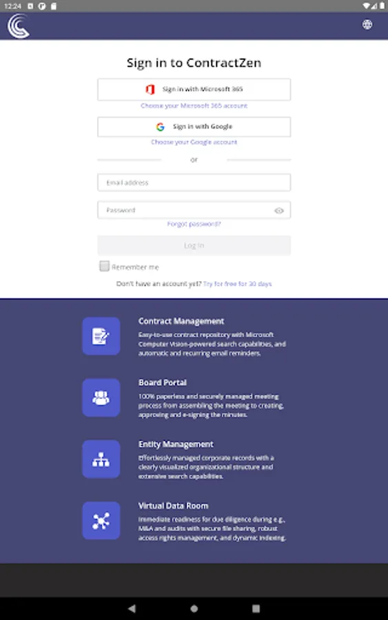 ContractZen is a Microsoft Preferred Solution running on Azure. SSO available to Microsoft 365 and Google.