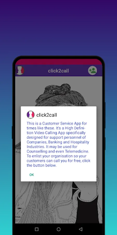 This is a Customer Service App for times like these. It's a High Definition Video Calling App specifically designed for support personnel of Companies, Banking and Hospitality Industries. It may be used for Counselling and even Telemedicine. To enlist your organisation so your customers can call you for free, click the add button.