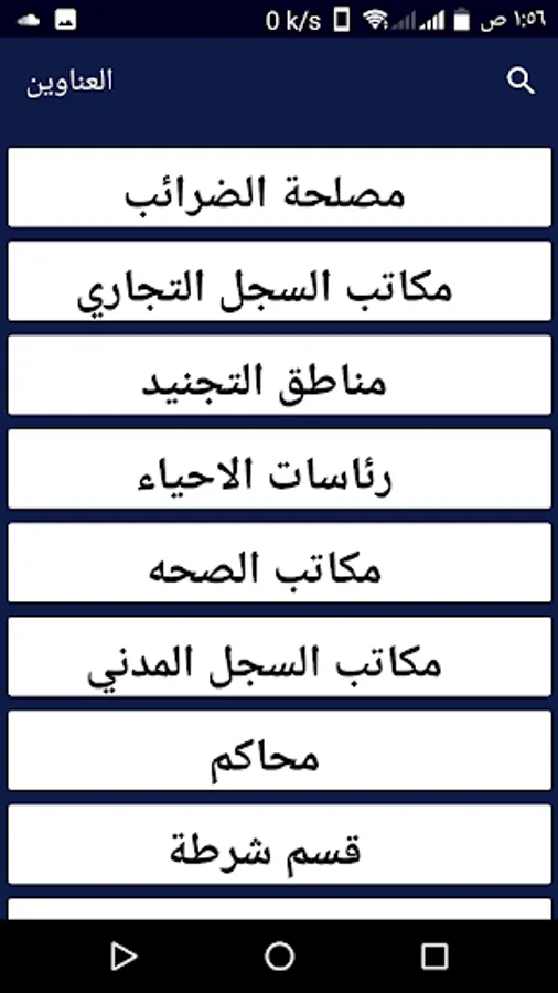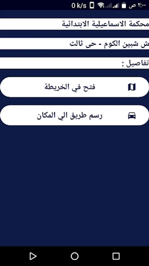 * Map of addresses where all addresses of the courts and police departments, prosecutors, health offices, labor offices, ministries, directorates and all places you need to reach (estimated to see the address of the place or show him on the map and also draw the road from the place of the address to Awza