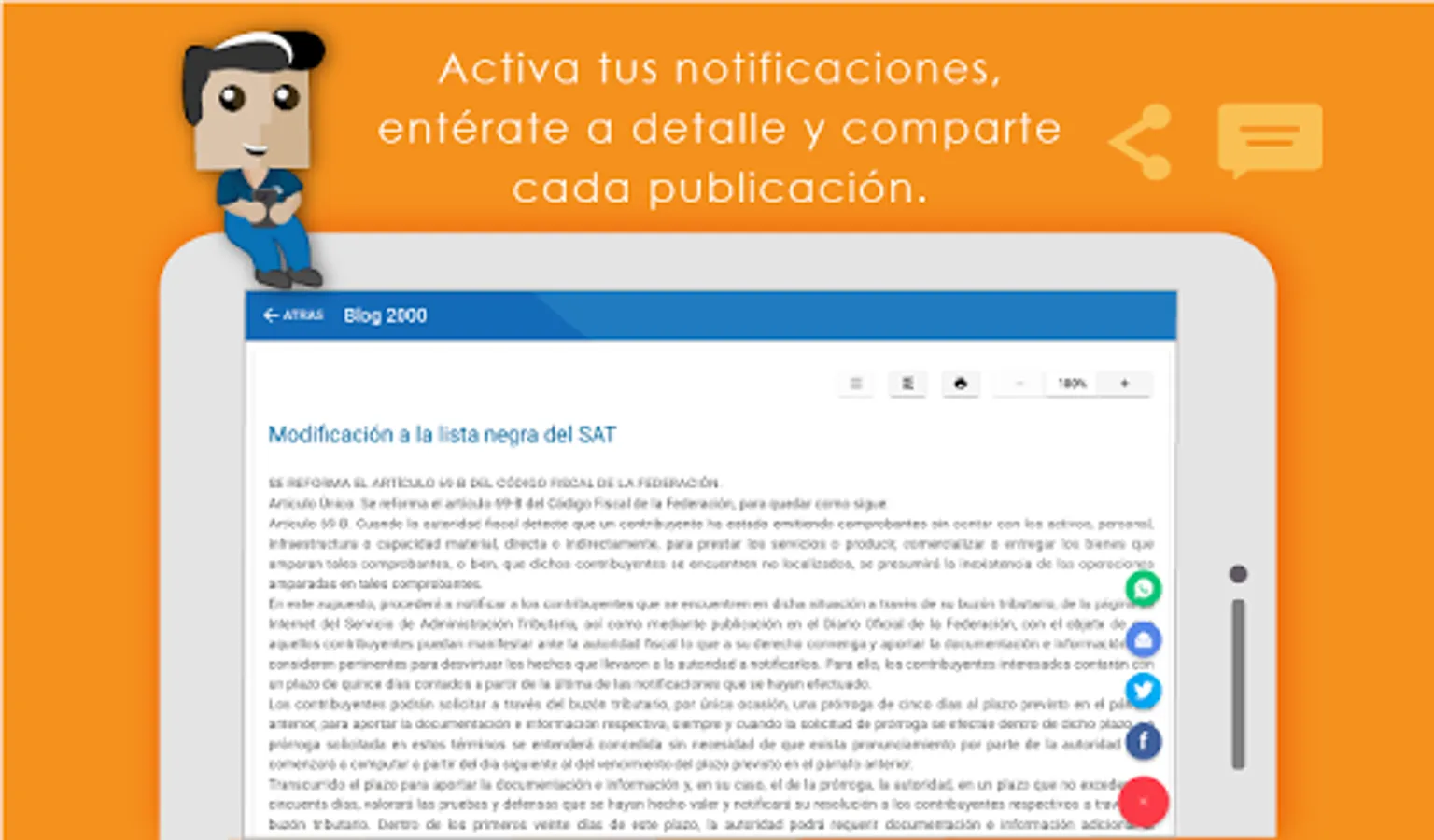 With this app you will receive notifications instantly from each publication of the L.C.P. Penélope Castro, so you will have all the information about the modifications and news of the tax authority. You can also learn a series of strategies to familiarize yourself and adapt easily to all the changes that are emerging on electronic accounting in Mexico.