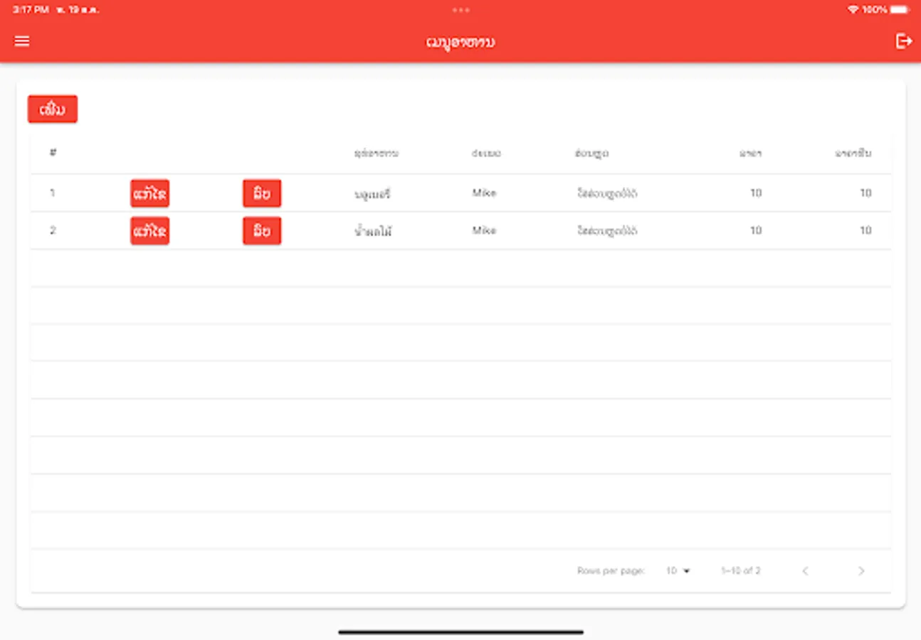 Restaurant management app Jfood Lao version accepting sales of food and beverages with daily, monthly sales report