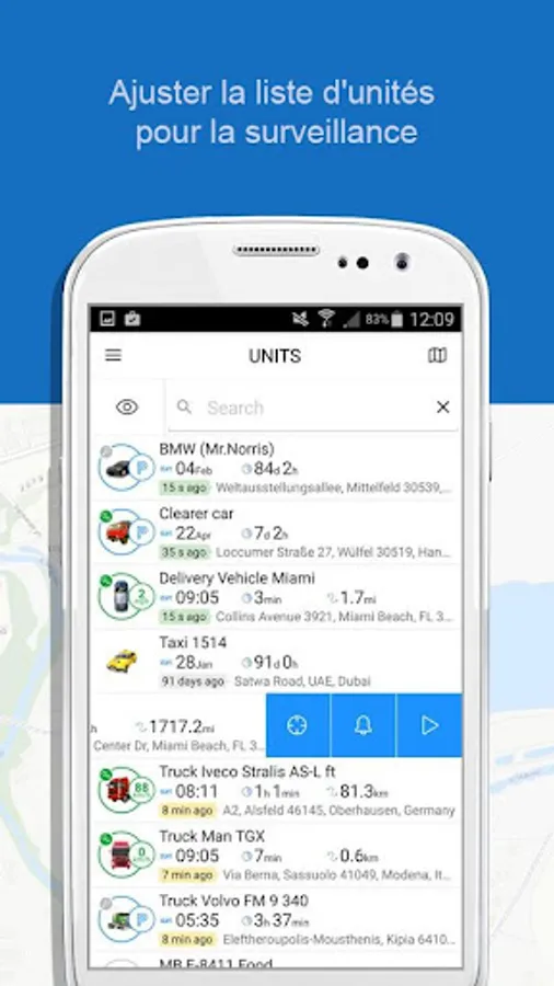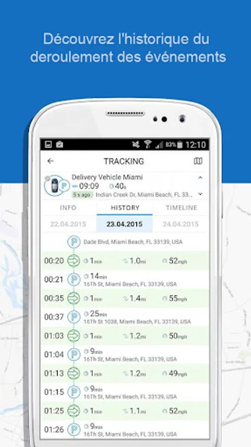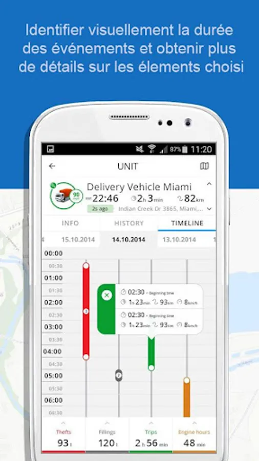 The new catalog "events" give you a brief overview of all trips and stops of each unit, with the detailed history of each.