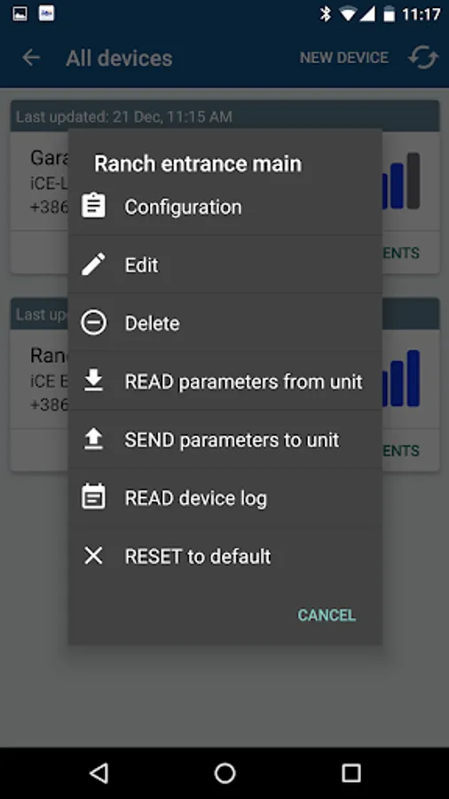 Note: For each operation (send, read) the application generates one text message to wake the GSM unit up. Device then connects to our web server and waits for parameters which have been configured in the ControlFreqUK app.