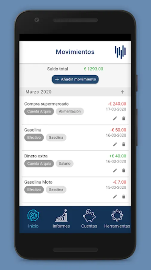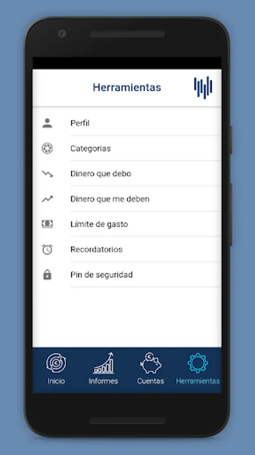 The Expenses app also has numerous Tools to help you with your management. You will be able to control the money that you owe and that they owe you, establish daily and monthly spending limits that you will receive in the form of a notification, punctual reminders that you will also receive in the form of a notification and the possibility of enabling a security PIN. If the PIN is enabled, it will be requested when starting the application, increasing the security that no one sees your personal data. The PIN will also be requested instead of the password for confidential user information.