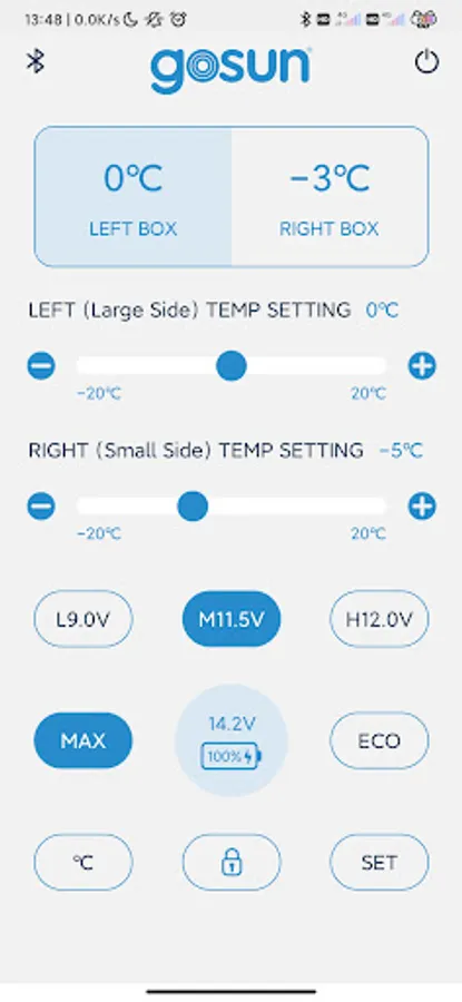 Connect the fridge via the App to control and check the temperatures, monitor battery power, adjust settings and turn the fridge off/on.