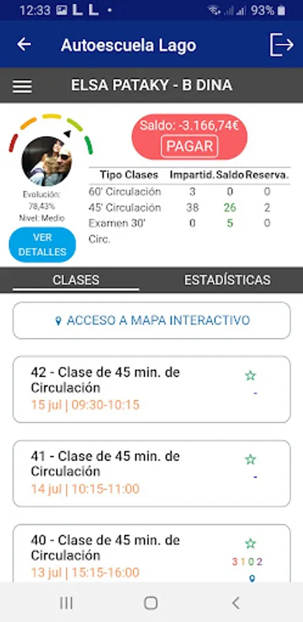 - Online schedule: through the schedule integrated into the app, you can check all the classes you book with the driving school.
