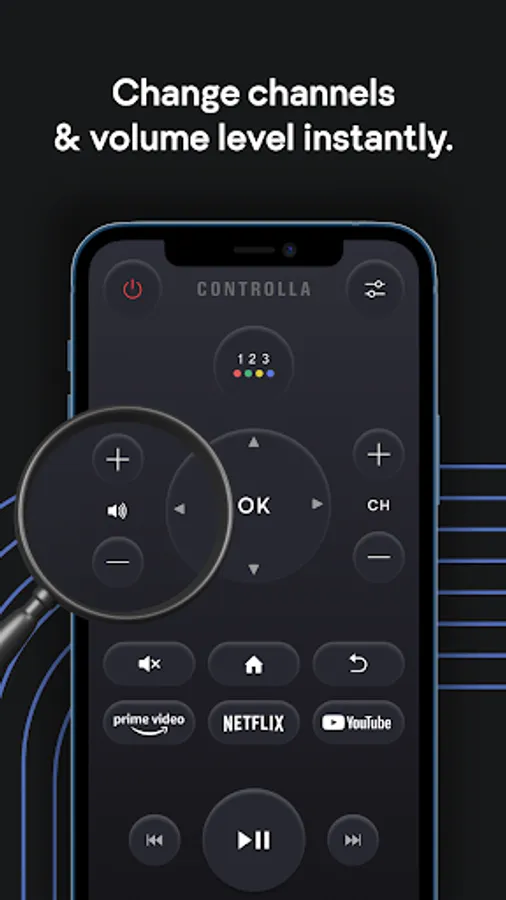 ⭐ Many Fuctionalities Covered - With your app, you will be able to perform various actions on your TV. Some of them are: Turn ON and OFF, Change channel, Adjust volume, Number keyboard buttons, Color buttons, Mute the sound, Play/Pause/Reverse/Fast Forward, Settings, Menu, Return button, Netflix/Amazon/Youtube buttons, and many other.
