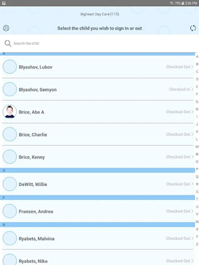KinderSign is a mobile app for tablet devices to allow parents and other authorized adults to sign children in and out of care at the childcare provider. All authentication information is instantly available in the system, for up-to-date queries about children in care. Time stamp information is available for time-and-attendance tracking, reporting and of course eventual provider reimbursement.