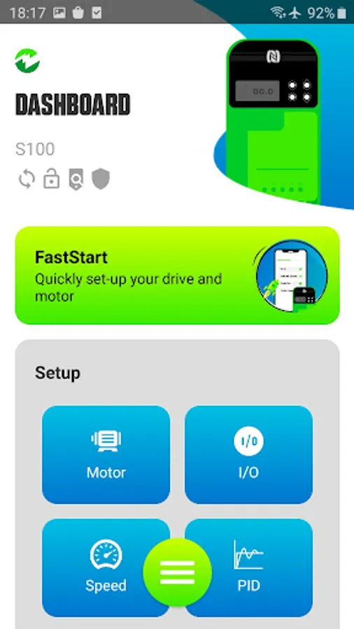 • Quick visualisation of I/O, motor, and speed settings
