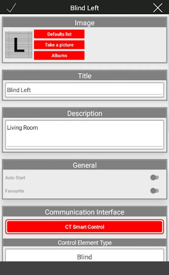 • Control: Different blind control elements and their structure can be created by yourself. Blinds are controlled either via graphical representation for height and angle (value-driven) or command buttons to start, stop and step adjustment (event-driven).