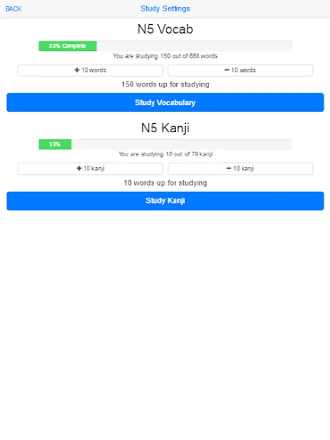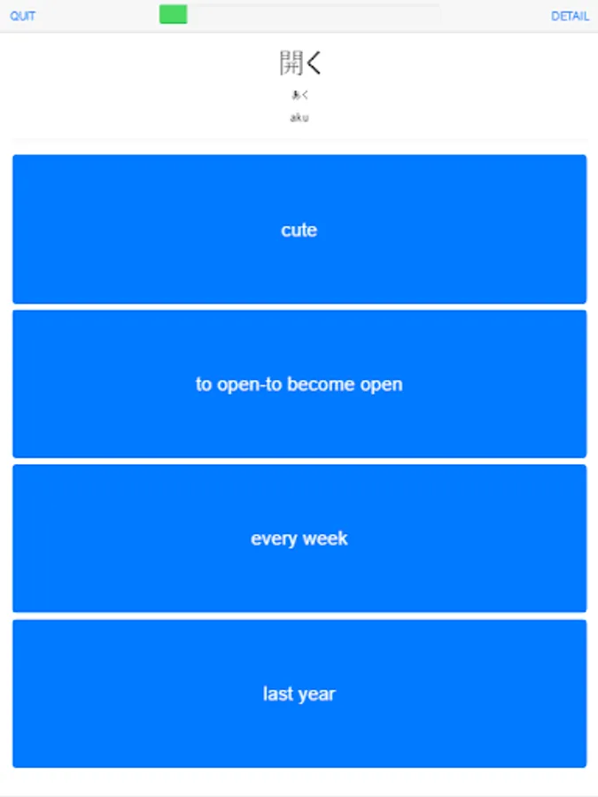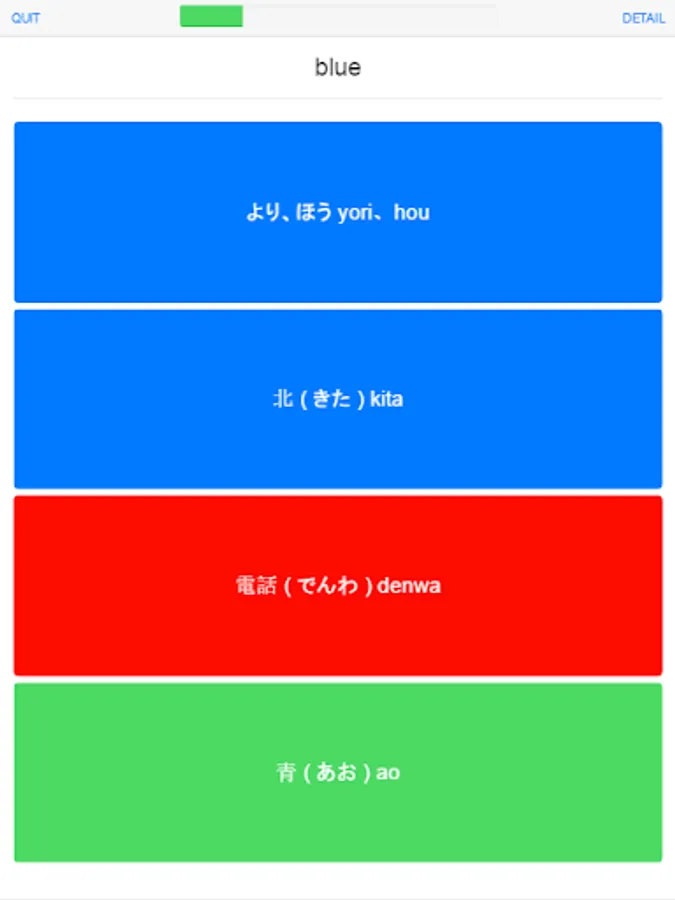 Learn your Vocabulary and Kanji for the JLPT with this clean and simple flash card application.
