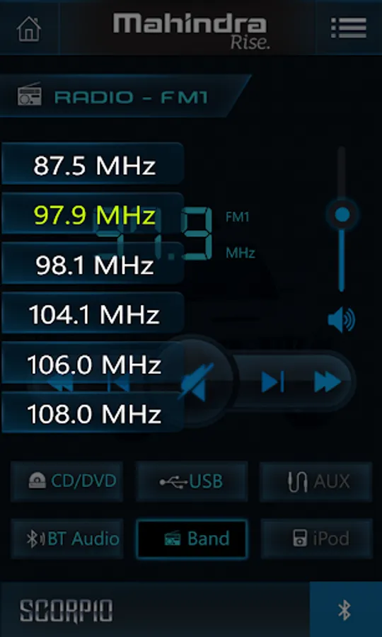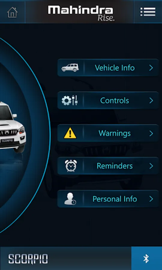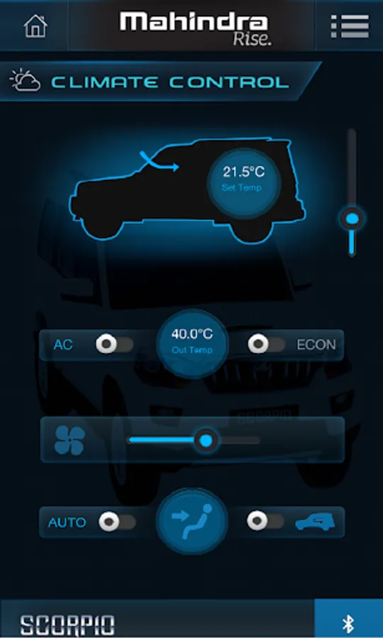 The Blue Sense APP, which facilitates user to control SCORPIO’s audio and climate control systems. Additionally, user can access real time vehicle information such as tire pressure, fuel consumption statistics, vehicle alerts etc.