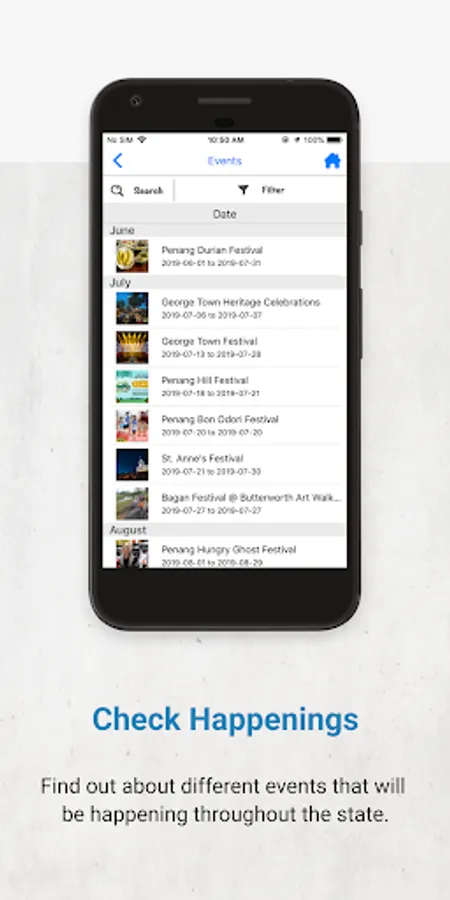 The application allows users to retrieve quick information, videos and photos of upcoming events, nearby attractions and places to visit, dine, shop and stay in Penang. Users will be able to find their current location and places they want to visit through GPS and Google Maps.