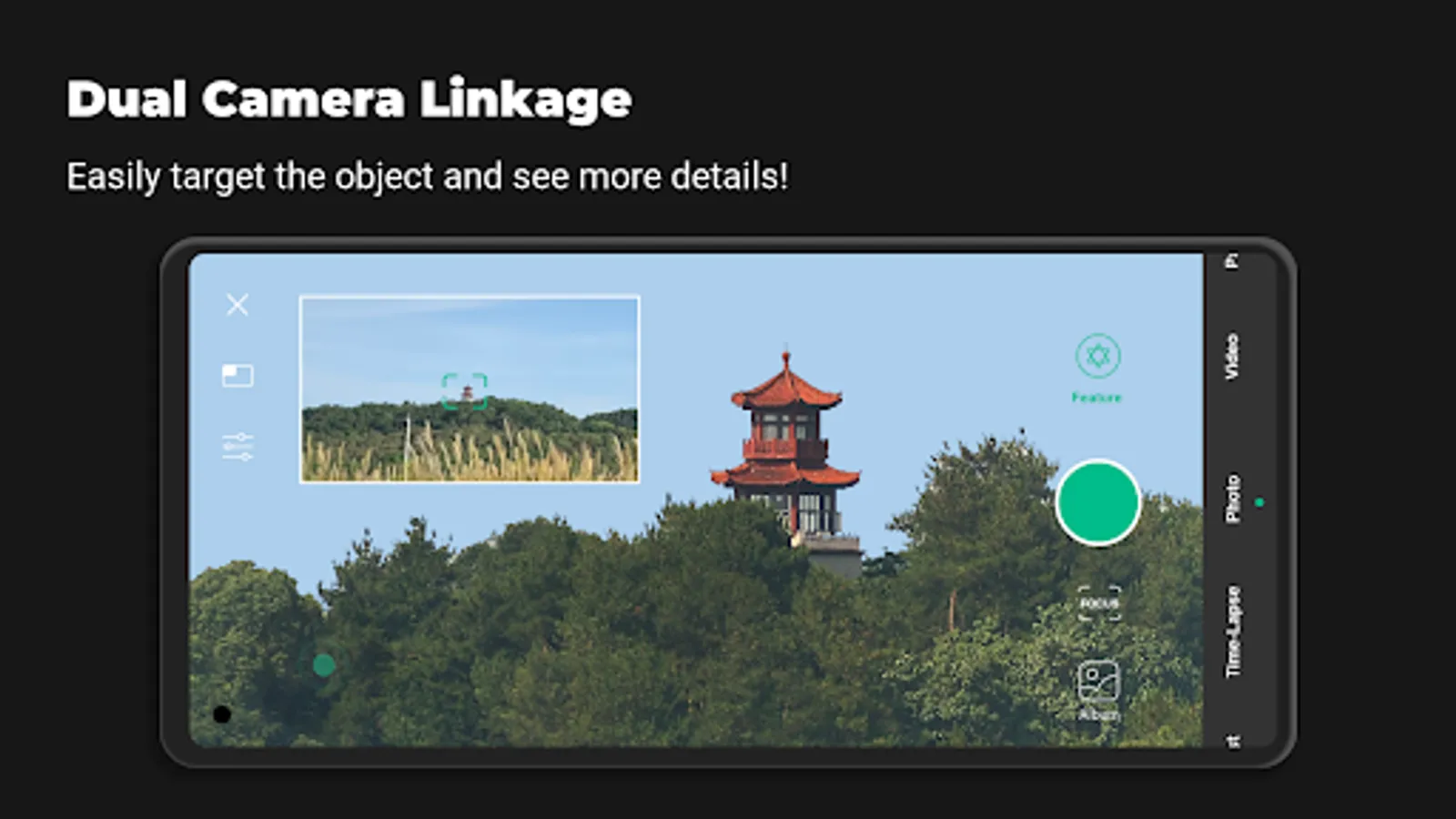 DWARF II can capture multiple images through 2-axis scanning, then stitch them into ONE picture. The pixel count can even reach ONE BILLION! Select panorama shooting mode. Try it for yourself! You will appreciate not only the whole scenery but also the minute details captured.