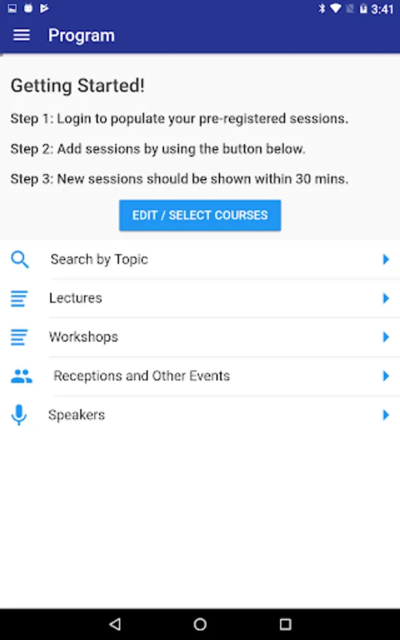 MyAgenda – Add sessions, events, and personal schedule items to your customized schedule