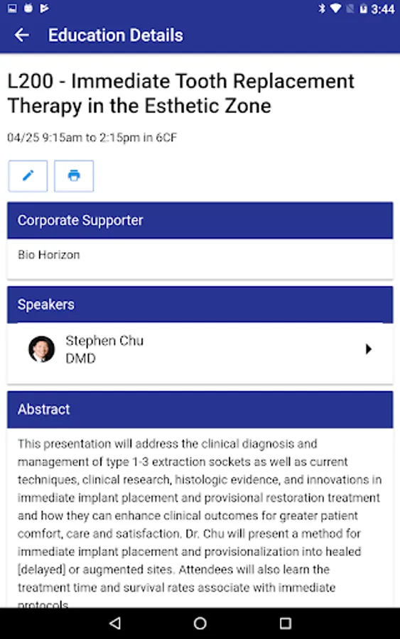 The official conference app for the American Academy of Cosmetic Dentistry (AACD) is improved in 2019. Our state of the art native mobile app allows AACD attendees to seamlessly connect and share information between their mobile devices and computer browser. Most critical for large meetings with uncertain internet, the app operates off-line and only requires an internet connection for syncing information. Even better, each user’s customized session agenda is already pre-populated to the app and additional sessions and personal schedule items can be added right from the app. Additional features include:
