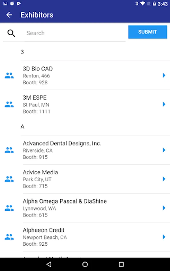 Exhibitors – Find detailed exhibitor information and booth locations with animated mapping