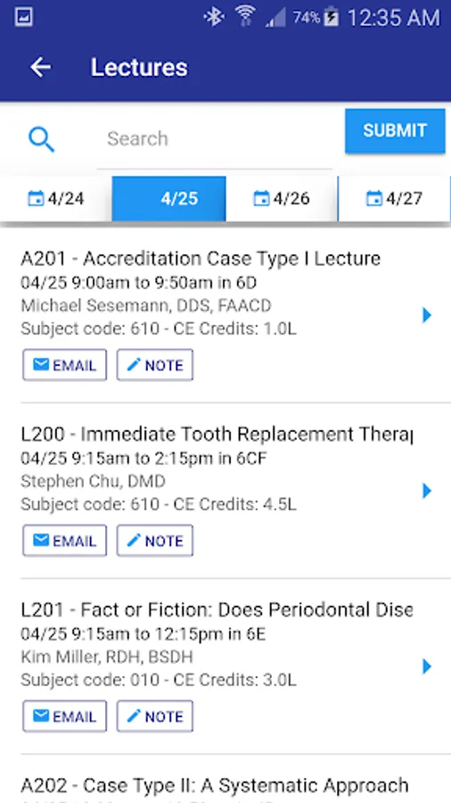 Sessions – Locate and add sessions, review abstracts, take session-specific notes, email speakers for follow-up