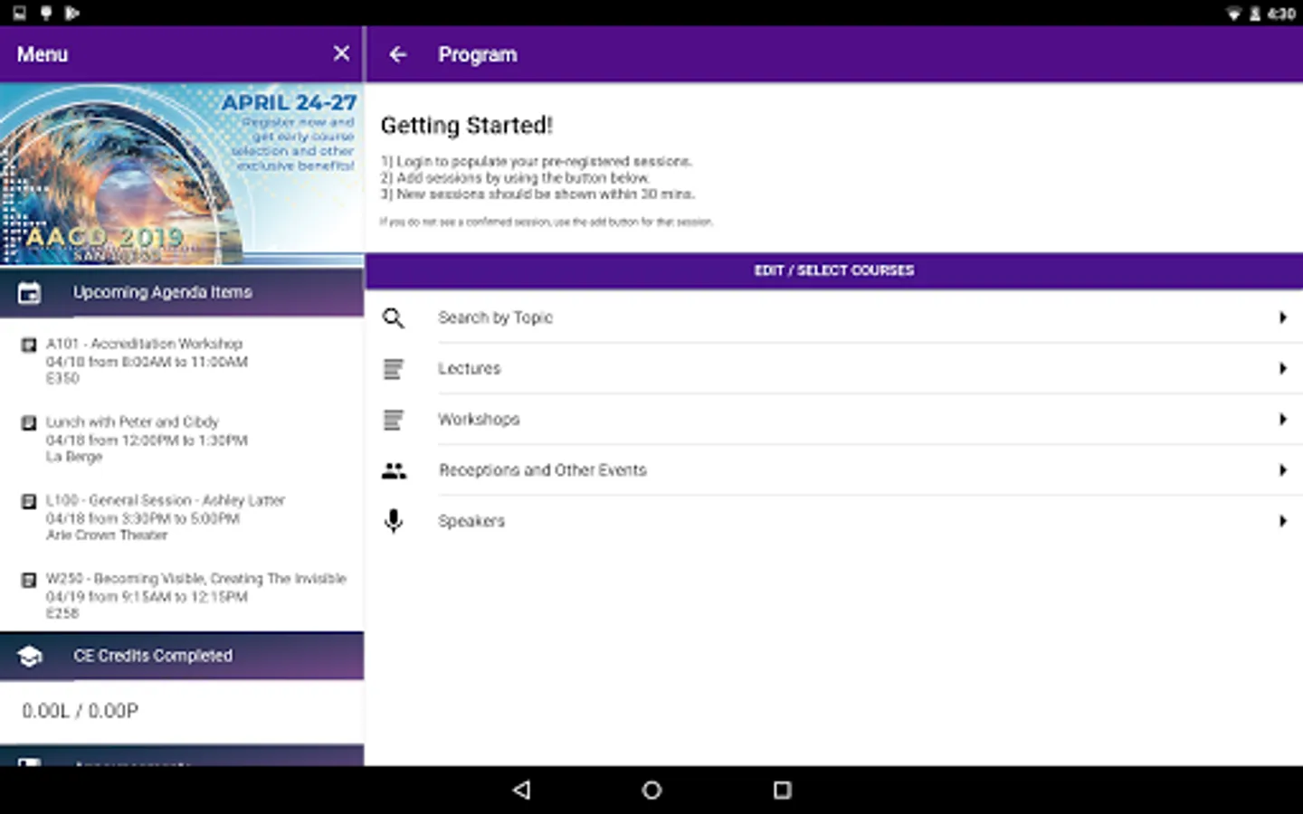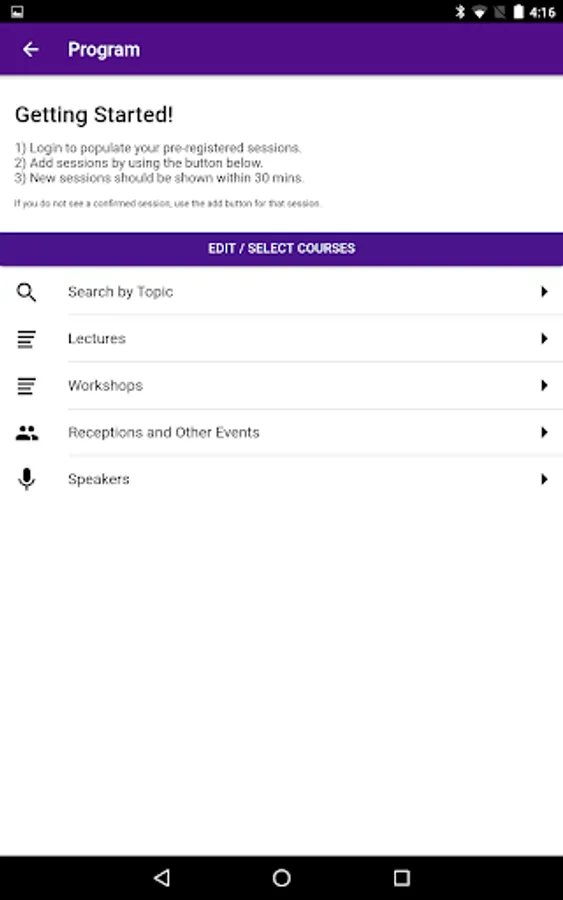 MyAgenda – Add sessions, events, and personal schedule items to your customized schedule