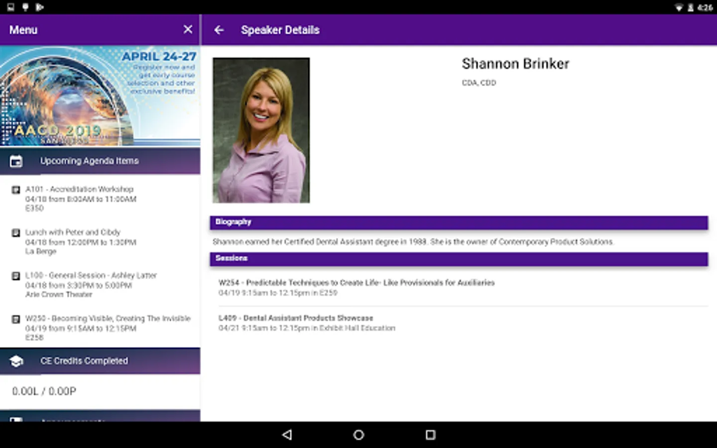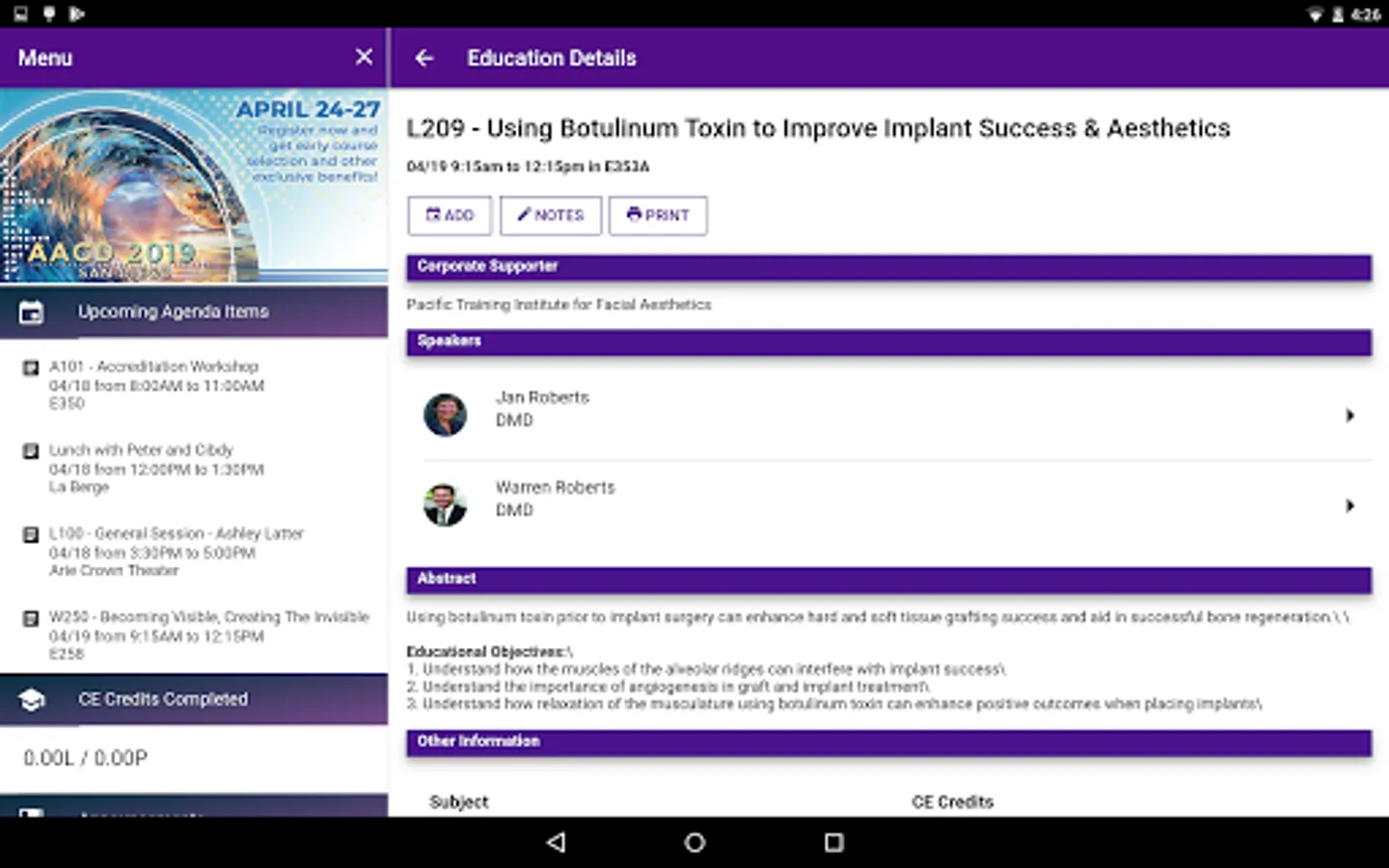 The official conference app for the American Academy of Cosmetic Dentistry (AACD) is improved in 2018. Our state of the art native mobile app allows AACD attendees to seamlessly connect and share information between their mobile devices and computer browser. Most critical for large meetings with uncertain internet, the app operates off-line and only requires an internet connection for syncing information. Even better, each user’s customized session agenda is already pre-populated to the app and additional sessions and personal schedule items can be added right from the app. Additional features include: