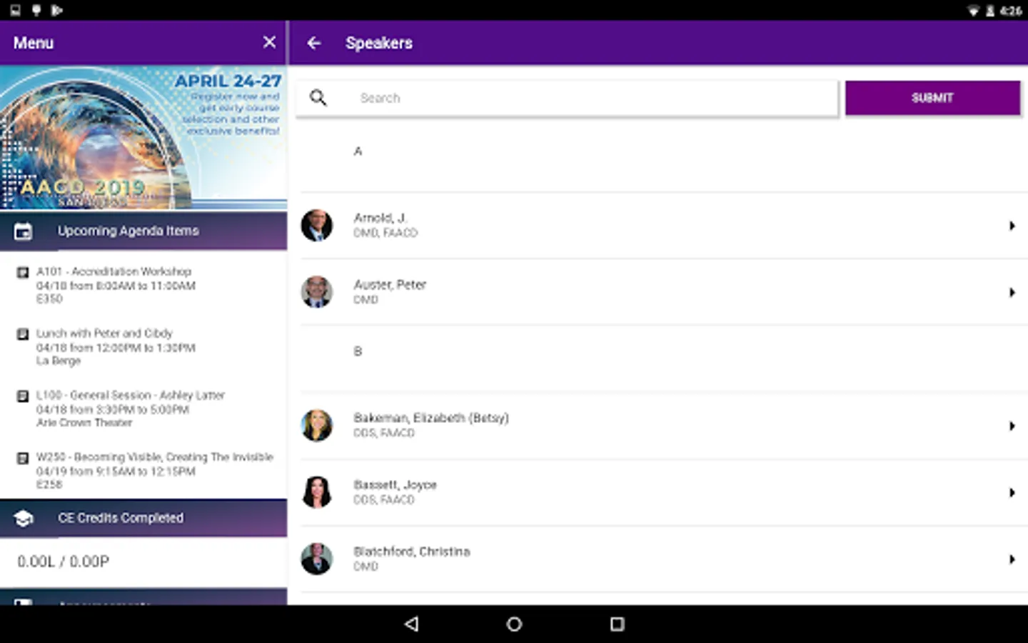 Continuing Education – Track continuing education courses, complete speaker evaluations, and check CE credits received