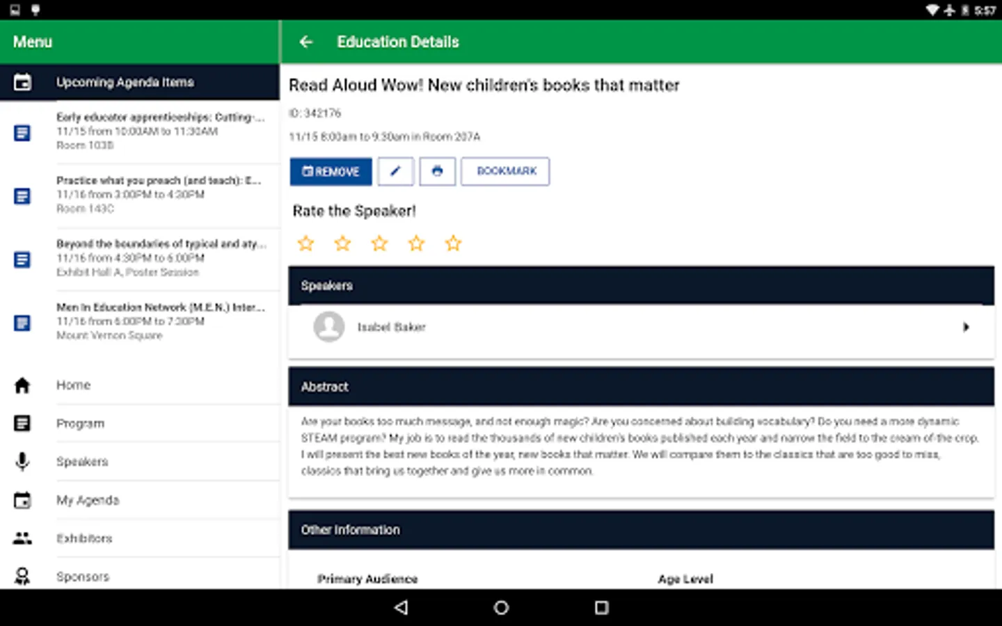 The NAEYC Annual Conference mobile app allows you to create your schedule, discover further information about presenters, participate in the conference's social media conversations, search through the exhibit hall. And much more!