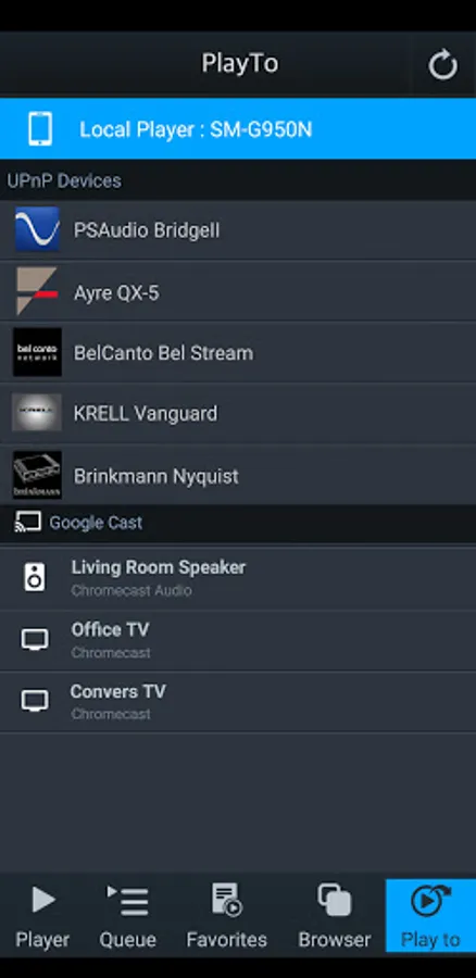 You can play media files from any Servers to any Playback Devices with mconnect Player.