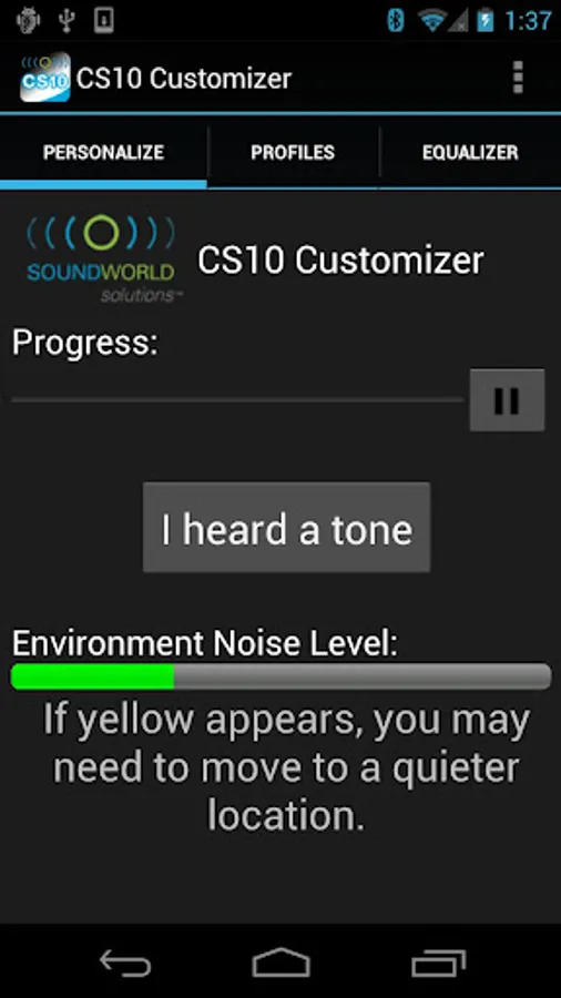 Under the "Personalize" tab of the app, an automated program will walk you through the steps in tailoring the performance of the CS10 to your preferences.