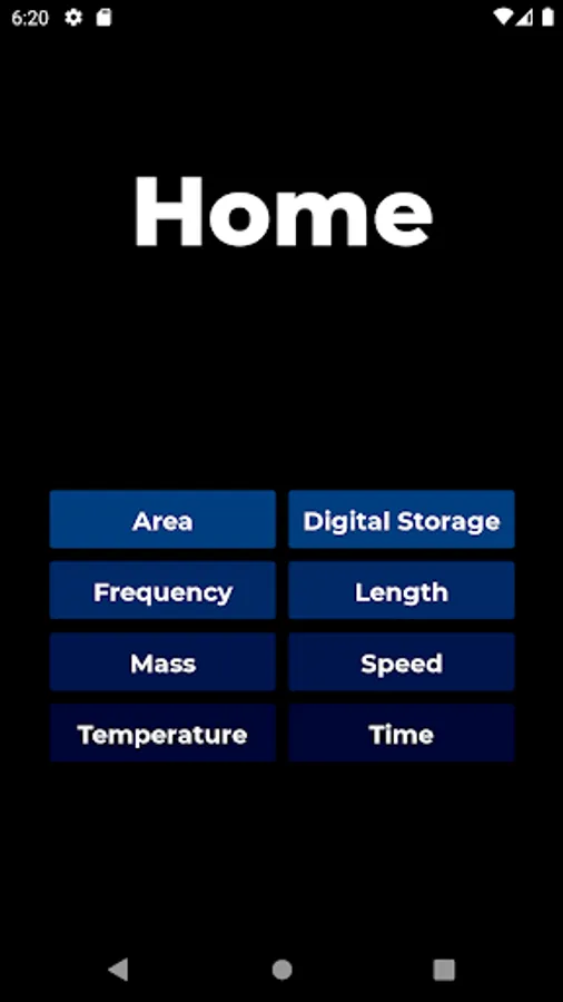 Eight Different Measurement Converters: Area, Digital Storage, Frequency, Lenght, Mass, Speed, Temperature and Time