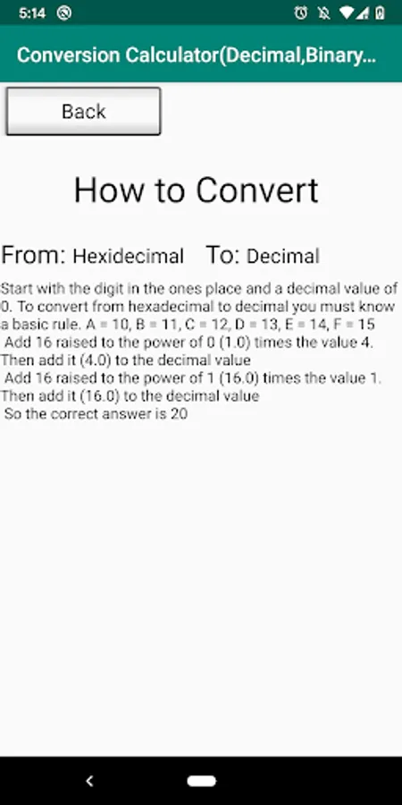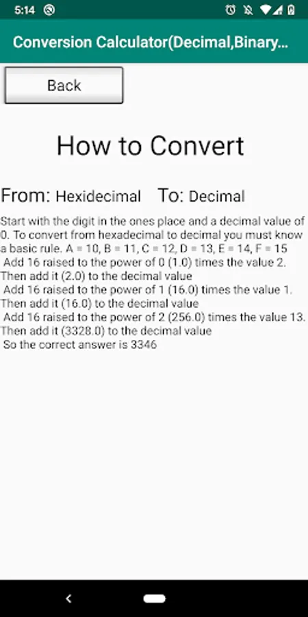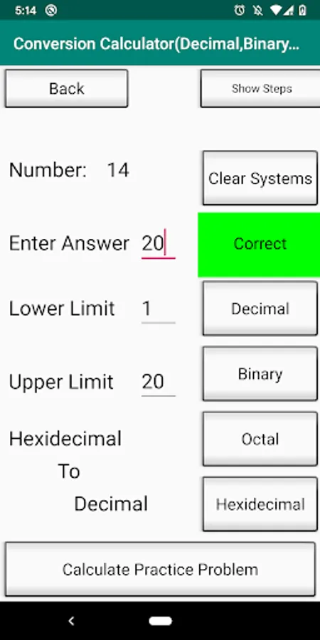 A converter that converts between Decimal, Binary, Octal, and Hexadecimal. Application shows concrete steps of how to convert between systems and can generate practice problems.
