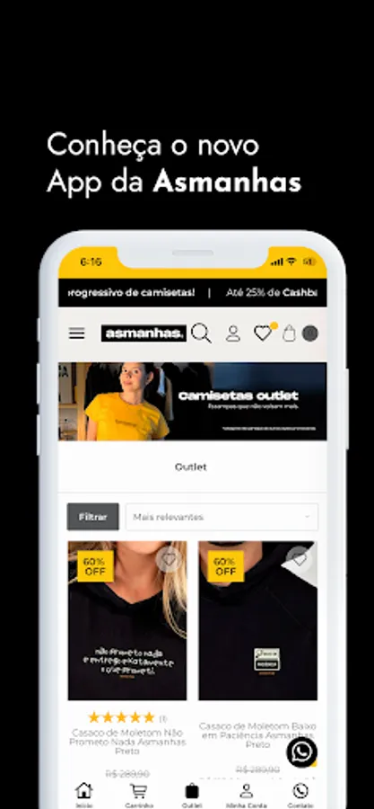 Download the Asmanhas App and have access to special offers, exclusive discounts and first-hand news. Find out about new releases before anyone else and enjoy benefits that only those who have the app can enjoy. Don't miss any opportunity – discover a new shopping experience and unique advantages!