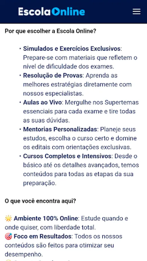 Escola Online is your complete preparation platform for PISM, ENEM, COLUNI and Federal Institutes. With our app, you will have access to dynamic classes, exclusive materials and a team of specialized teachers, we offer the best learning experience for those seeking approval. Study at your own pace, with strategy and efficiency, and get the job of your dreams!