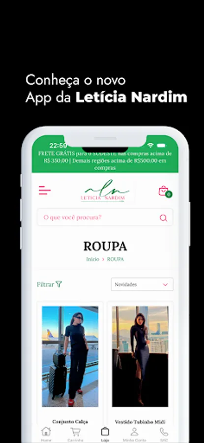 Explore our diverse collection of stylish pieces, from stunning dresses to modern blouses and sophisticated pants. Easily browse categories, sizes, and styles to find exactly what you want. In addition, the Nardim application offers humanized service so that you can clear your doubts before buying.