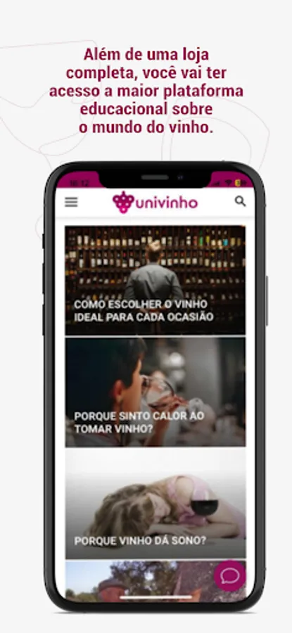 If you are passionate about wine, then you need to have the new official UNIVINHO app in the palm of your hand and have access to the best labels selected by our experts. Discover new flavors, explore different terroirs in our store and improve your knowledge with the largest educational platform on the world of wine. Download now!