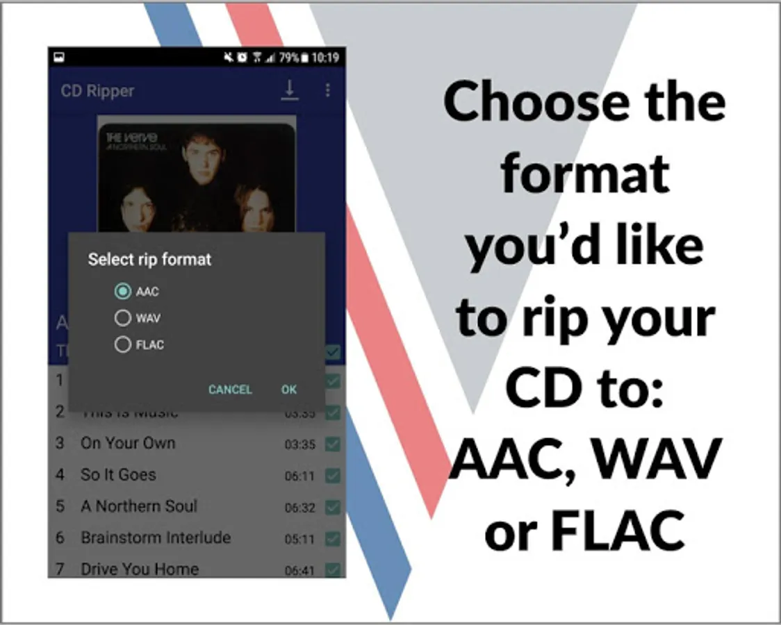 You can choose which format you’d like your CDs converted to: AAC, WAV or FLAC.